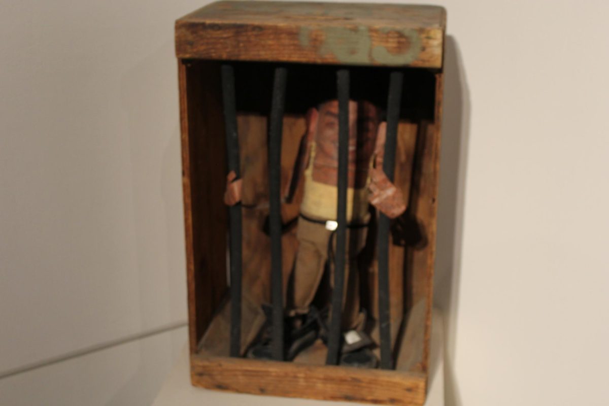 “He is a little character in a crate, looking as if he’s behind bars,” Alvarez said.