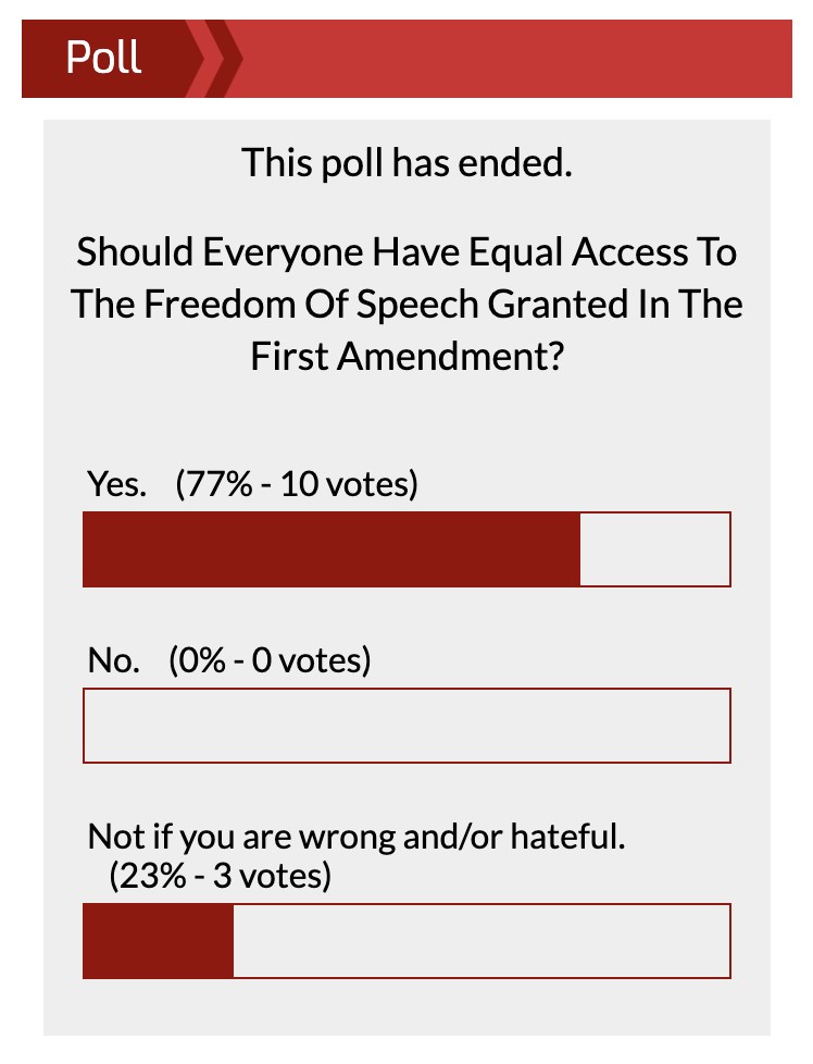 The Rampage recently conducted two different polls, asking the Fresno City College community a simple question across two different platforms: “Should everyone have equal access to the free speech granted in the First Amendment?”